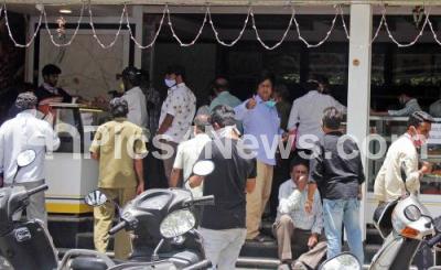 Photo Caption : People crowded at a hotel to order food (seem to ignore social distancing guidelines) during the nationwide lockdown in the wake of novel coronavirus (COVID 19) pandemic, in Bengaluru on Tuesday 12th May 2020