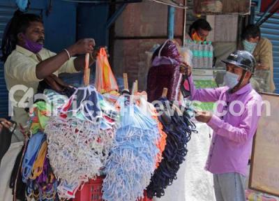 Photo Caption : Vendor selling protective masks during the nationwide lockdown in the wake of novel coronavirus (COVID 19) pandemic, in Bengaluru on Tuesday 12th May 2020