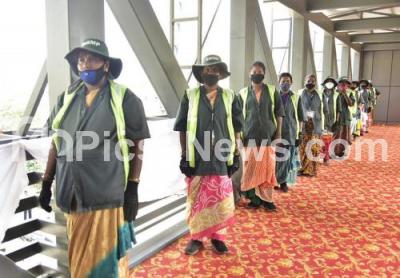 Photo Caption : BBMP pourakarmika workers being felicitated during inauguration of Sky Walk at ISCKON temple, in Bengaluru on Thursday 14th May 2020
