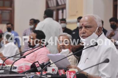 Photo Caption : CM BS Yediyurappa meeting on APMC Act at Vidhan Soudha, in Bengaluru on Friday 15th May 2020