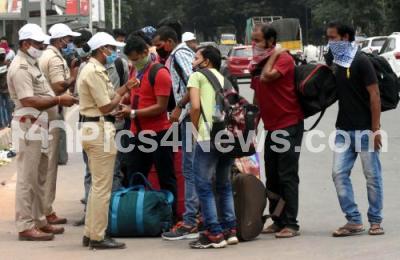 Photo Caption : Stranded people of Odisha standing in the queue at Palace Grounds for registration to reach their native places, after the government eased the nationwide lockdown imposed as a preventive measure against the COVID 19 coronavirus, in Bengaluru on Saturday 16th May 2020