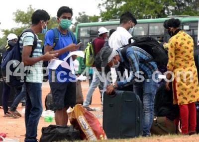 Photo Caption : Stranded people of Odisha standing in the queue at Palace Grounds for registration to reach their native places, after the government eased the nationwide lockdown imposed as a preventive measure against the COVID 19 coronavirus, in Bengaluru on Saturday 16th May 2020