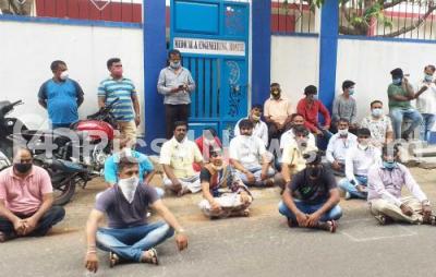 Photo Caption : Residents of Basavanagudi staging a protest in front of Government Medical and Engineering Hostel for choosing this place to accommodate passengers arrived from Delhi for quarantine, in Bengaluru on Saturday 16th May 2020