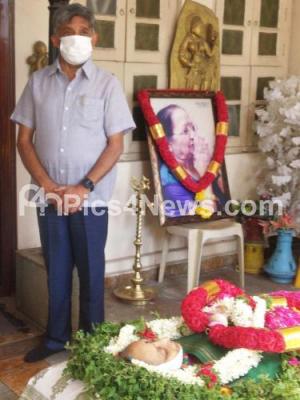 Photo Caption : Rajya Sabha member KC Ramamurthy paying his last respect to renowned vocalits Shyamala G Bhave (79), who passed away today, in Bengaluru on Friday 22nd May 2020