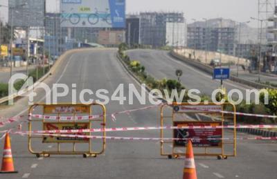 Photo Caption : Busy Bellary Road wears a deserted look after Sunday lock down called by Karnataka Government amid rising Coronavirus cases, in Bengaluru on Sunday 24th May 2020