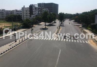 Photo Caption : Busy Silk board junction wears a deserted look after Sunday lock down called by Karnataka Government amid rising Coronavirus cases, in Bengaluru on Sunday 24th May 2020