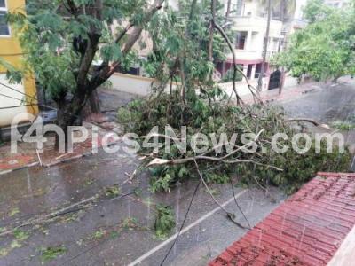 Photo Caption : Many trees uprooted and damaged many cars in JP Nagar due to heavy rains lashed Bangalore City on Sunday 24th May 2020