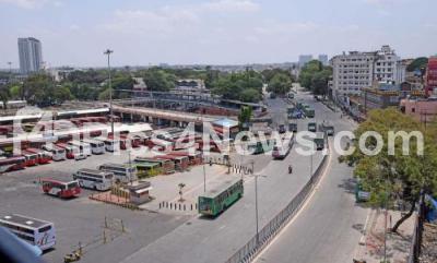 Photo Caption : Deserted look of majestic bus terminal after Sunday lock down called by Karnataka Government amid rising Coronavirus cases, in Bengaluru on Sunday 24th May 2020