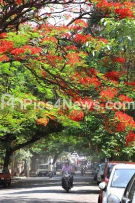 Photo Caption : Gulmohar Flower blooming at Malleshwaram, amid ongoing Coronavirus lockdown, in Bengaluru on Tuesday 26th May 2020