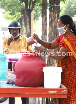 Event Description : A woman selling Ragi malt at Ring Road, Laggere, amid ongoing Coronavirus lockdown, in Bengaluru on Wednesday 27th May 2020