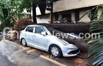 Trees uprooted and damaged many cars and 2 wheelers in Malleshwaram after heavy rains lashed Bengaluru on Wednesday 27th May 2020
