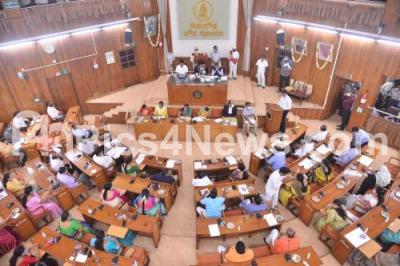 Photo Caption : Mayor Goutham Kumar, Deputy Mayor Rajmohan Raju and Councilors seen during BBMP Council Session at BBMP, in Bengaluru on Thursday 28th May 2020