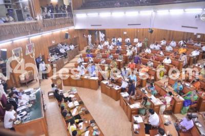 Photo Caption : Mayor Goutham Kumar, Deputy Mayor Rajmohan Raju and Councilors seen during BBMP Council Session at BBMP, in Bengaluru on Thursday 28th May 2020