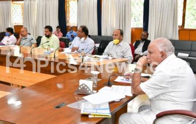 Photo Caption : CM BS Yediyurappa with MLA Vishwanath, Chief Secretary Vijay Bhaskar and Department officials during a review meeting of department of basic facilities development at home office Krishna, in Bengaluru on Saturday 30th May 2020
