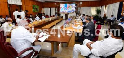 CM BS Yediyurappa interacts with DCs and SPs on Covid 19 through video call at home office Krishna, in Bengaluru on Tuesday 2nd June 2020