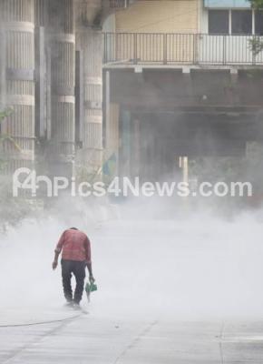 Photo Caption : Workers cutting concrete road to give final touches to the white topping road at Jayanagar, in Bengaluru on Thursday 4th June 2020