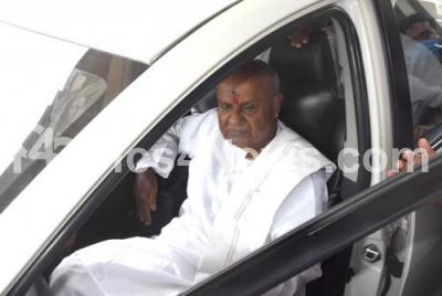 Photo Caption : JDS Rajya Sabha candidate HD Devegowda arriving to file his nomination papers for the Rajya Sabha seat at Vidhana Soudha, in Bengaluru on Tuesday 9th June 2020