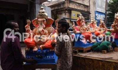 Photo Caption : Ganesha idols made out of clay being shifted from kengeri to a shop at KR road for sales for the forth coming Ganesha Festival, in Bengaluru on Friday 12th June 2020