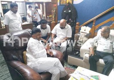 Photo Caption : KPCC Designated President DK Shivakumar visited MLC HM Revanna residence, in Bengaluru on Saturday 13th June 2020