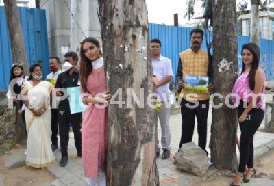 Kannada Actors Ragini Dwivedi and Sonika Gowda with activists participated in a “Save Tree and Save Bengaluru Campaign” against the BMRCL for chopping of trees on the near the fire station on Bannerghatta Road, the campaign was organised by Cubbon Park Walkers Association, in Bengaluru on Wednesday 17th June 2020