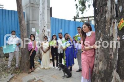 Event Description : Kannada Actors Ragini Dwivedi and Sonika Gowda with activists participated in a “Save Tree and Save Bengaluru Campaign” against the BMRCL for chopping of trees on the near the fire station on Bannerghatta Road, the campaign was organised by Cubbon Park Walkers Association, in Bengaluru on Wednesday 17th June 2020