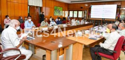 Chief Minister of Karnataka BS Yediyurappa with DCM Dr Ashwath Narayan and officials of Department of Information Technology, Biotechnology, Science and Technology held a progress review meeting at home office Krishna, in Bengaluru on Wednesday 17th June 2020