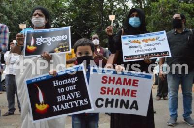 Members of Aam Aadmi Party paid candle light tribute to Indian soldiers martyred in the India and China border conflict, the condolence program was held at Anand Rao Circle, in Bengaluru on Wednesday 17th June 2020