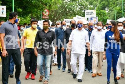 Sudhakar, Narayan Gowda, Former Indian Cricketer Anil Kumble, Actors Puneeth Rajukumar, Ragini Dwivedi and others participated in "Mask Day" organised jointly by BBMP and Karnataka Health Department at Vidhana Soudha, during the fifth phase of nationwide COVID-19 Coronavirus lockdown, in Bengaluru on Thursday 18th June 2020
