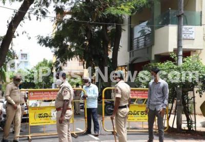Police personnel security at Education Minister Suresh Kumar residence at Basaveshwaranagar following NSUI protest against SSLC exams, in Bengaluru on Saturday 20th June 2020