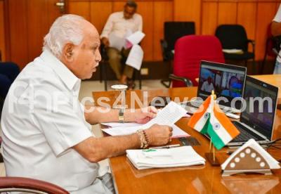 Chief Minister BS Yediyurappa participated in Horasis India 12th CII meeting through video conference at CM Home office Krishna, in Bengaluru on Monday 22nd June 2020