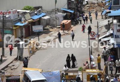 Photo Caption : Avenue road has been sealed off due to the Corona positive cases, during the fifth phase of nationwide COVID-19 Coronavirus lockdown, in Bengaluru on Wednesday 24th June 2020