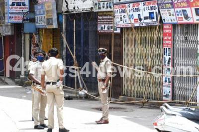 Photo Caption : SP Road commercial area has been sealed off due to the Corona positive cases, during the fifth phase of nationwide COVID-19 Coronavirus lockdown, in Bengaluru on Thursday 25th June 2020
