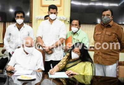Photo Caption : CM BS Yediyurappa with MP Sumalatha Ambareesh, Film Producer Rockline Venkatesh, Actor Doddanna at a meeting at Vidhana Soudha, in Bengaluru on Monday 29th June 2020