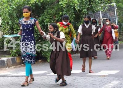 Photo Caption : SSLC students with protective masks seen arriving at the Exam centre to appear for the SSLC exam at Malleshwarm, in Bengaluru on Wednesday 1st July 2020