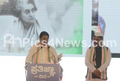 DK Shivakumar seen taking charge as the President of KPCC in the presence of outgoing KPCC president Dinesh Gundu Rao, Senior Congress Leaders Mallikarjuna Kharge, Siddaramaiah, SR Patil, KC Venugopal, Congress Leader and Karnataka In Charge, Eshwar Khandre, Saleem Ahmed and Satish Jarkiholi during the Pratijna Day and formal coronation of DK Shivakumar as KPCC President, the program was held at KPCC Office, Queens Road, in Bengaluru on Thursday 2nd July 2020