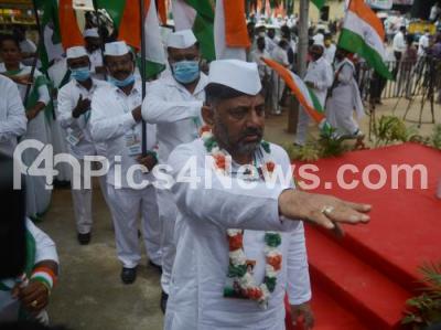 Photo Caption : DK Shivakumar seen taking guard of honor during the Pratijjna Day and formal coronation program of DK Shivakumar as KPCC President, the program was held at KPCC Office, Queens Road, in Bengaluru on Thursday 2nd July 2020