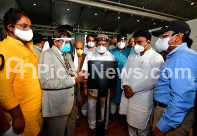 Photo Caption : CM BS Yediyurappa with DCM Ashwath Narayan, Ministers Basavaraj Bommai, Dr Sudhakar, R Ashok and others visited the COVID-19 care centre set up at Bengaluru International Exhibition Centre (BIEC) , in Bengaluru on Thursday 9th July 2020