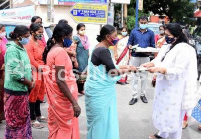 Photo Caption : MLA Sowmya Reddy distributed Energy Booster kits to BBMP workers and public at Jayanagar, in Bengaluru on Friday 10th July 2020