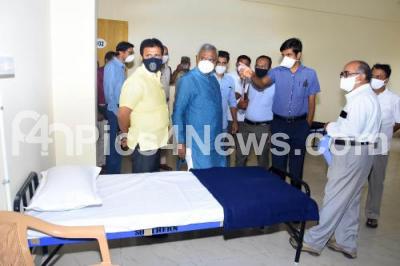 Photo Caption : ST Someshekar, District In Charge Minister, inspected the newly prepared Covid Hospital with 600 beds at the new Academic Bhavan of Karnataka State Open University (KSOU) at Mandakalli, in Mysuru on Saturday 11th July 2020