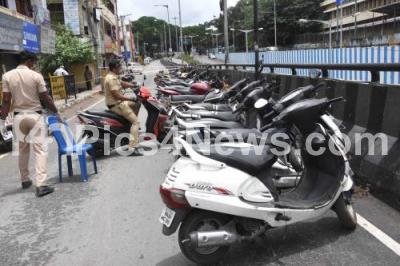 Photo Caption : Police personnel parking seized vehicles at Mallehwaram during lockdown, as Karnataka Government announced one week lockdown in Bengaluru City due to surge in COVID-19 Coronavirus cases, in Bengaluru on Thursday 16th July 2020