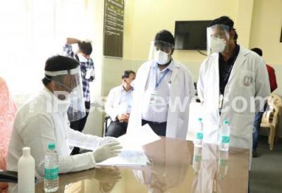 Photo Caption : Medical Education Minister Dr Sudhakar interacting with the Doctors during his visit to CV Raman General hospital, in Bengaluru on Thursday 16th July 2020