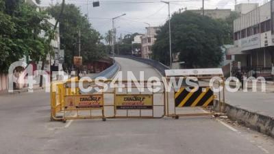 Photo Caption : Mission Road flyover closed, as Karnataka Government announced one week lockdown in Bengaluru City due to surge in COVID-19 Coronavirus cases, in Bengaluru on Sunday 19th July 2020