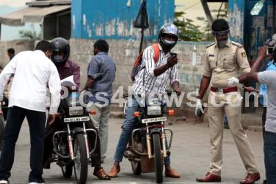 Photo Caption : Police check post at Yeshwanthpur, as Karnataka Government announced one week lockdown in Bengaluru City due to surge in COVID-19 Coronavirus cases, in Bengaluru on Sunday 19th July 2020