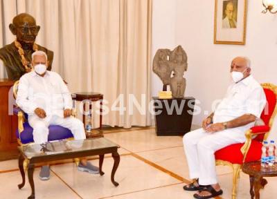 Photo Caption : CM BS Yediyurappa called on Governor Vajubhai Vala at Raj Bhavan, in Bengaluru on Wednesday 22nd July 2020