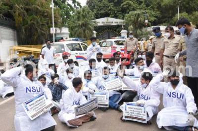 Photo Caption : Members of NSUI (National Students Union of India) staging a front of Raj Bhavan to protest to cancel final year exams of the UG, PG, VTU and postponement of Karnataka CET, in Bengaluru on Friday 24th July 2020