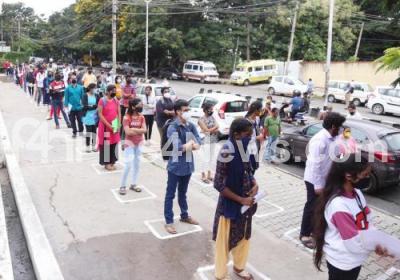 Students arrive at designated center for CET exams at SSMRV College, in Bengaluru on Thursday 30th July 2020
