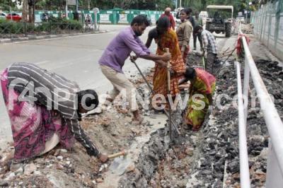 Photo Caption : Cable line laying work in progress at Cubbon Road, in Bengaluru on Sunday 02nd August 2020