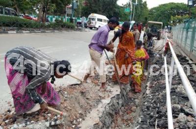 Photo Caption : Cable line laying work in progress at Cubbon Road, in Bengaluru on Sunday 02nd August 2020