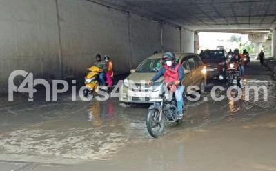 Photo Caption : Commuters passing through rain water logged underpass at Okalipura junction, in Bengaluru on Sunday 02nd August 2020