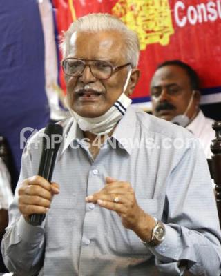 B Channareddy President, Federation of Karnataka Lorry owners association addressing a press conference with B Srinivasa Rao, Vice President, Federation of Karnataka Lorry owners association at Chamarajpet , in Bengaluru on Monday 03 August 2020